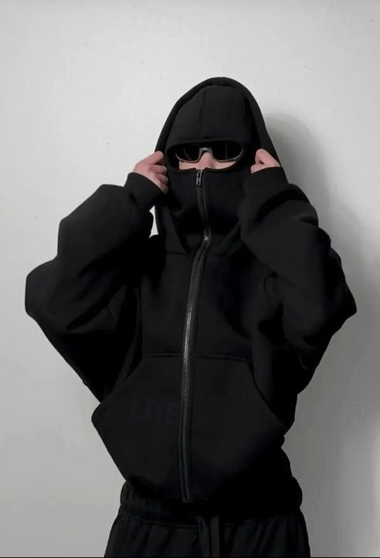 Masked Zipped Hoodies Black